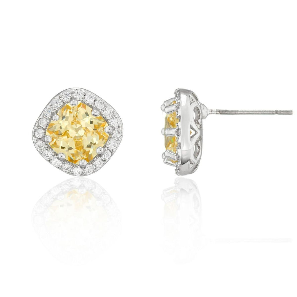 Buckley Canary Cushion Halo Stud Earrings