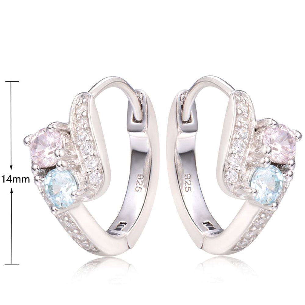 J&T PINK & LIGHT BLUE RHODIUM EARRING